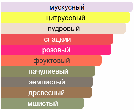 Верхние ноты: мандарин, грейпфрут, персик, ириска