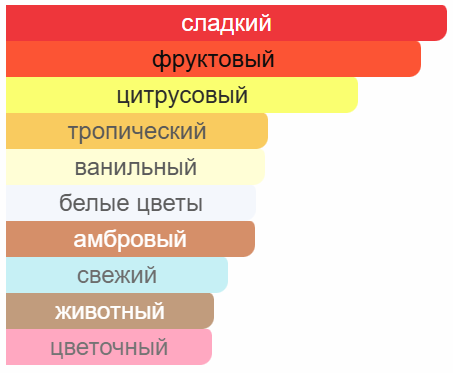 Средние ноты: иланг-иланг, жасмин, пачули и кедр, создающие гармоничное сочетание сладости, экзотики и благородства.