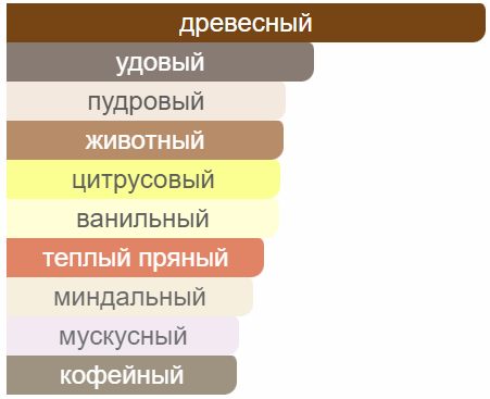 Базовые ноты: ваниль, сандал, амбра, пачули