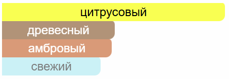 Верхние ноты: апельсин, грейпфрут, бергамот. Они создают свежий и бодрящий старт.