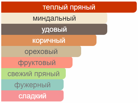 Верхние ноты: горький миндаль, бергамот, розовый перец