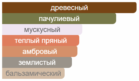 Средние ноты: древесные, мускусные и пряные оттенки пачули.