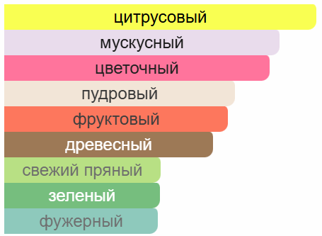 Верхние ноты: свежие и легкие, с цитрусовыми акцентами.