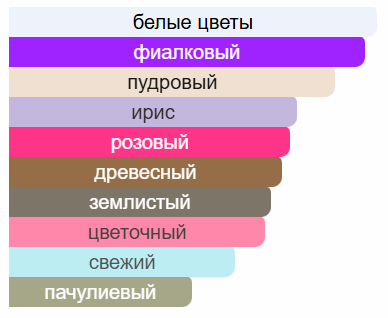 Аромат начинается с элегантных цветочных нот фиалки и ириса, затем переходит в сердце с розой, жасмином и флёрдоранжем. Завершается композиция тёплыми и землистыми нотами ветивера и пачули, создавая гармоничный и чувственный шлейф.