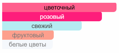 Этот аромат открывается яркими нотами пионов, фрезии и личи, создавая ощущение свежести и воздушности. В сердце композиции раскрываются цветочные ноты розы, ландыша и магнолии, добавляя аромату изысканность. Базовые ноты амбры и кедра придают аромату глубину и стойкость, завершая его тёплым и чувственным шлейфом.