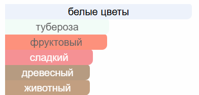 Аромат начинается с ярких и свежих нот граната и лилии, переходя в цветочное сердце с гарденией, жасмином, туберозой и другими утонченными цветами. Завершается аромат тёплыми и глубокими базовыми нотами мускуса, сандала и ванили, создавая стойкий и чарующий шлейф.