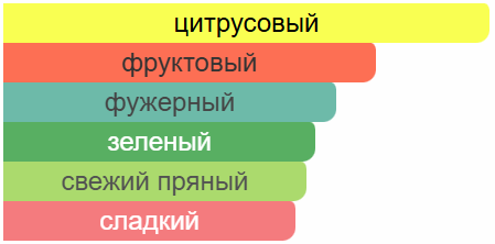 Верхние ноты: чёрная смородина, мандарин, лимон