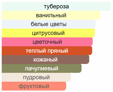 Верхние ноты: шафран, бергамот, цветочные аккорды