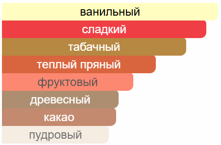 Открытие аромата дарит насыщенный и пряный аккорд табачного листа, обрамлённого восточными специями. В сердце раскрывается сладкая, гурманская ваниль в обрамлении кремового какао и тонка-бобов, создающих ощущение теплоты и уюта. В базе парфюм окутывает мягкой дымкой из сухофруктов и древесных оттенков, оставляя за собой шлейф благородства и чувственности. Tobacco Vanille — идеальный выбор для холодного времени года, вечерних выходов и уверенных в себе натур, которые ценят глубокие, насыщенные композиции с винтажным шармом и элегантной теплотой.