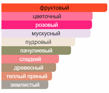 Аромат открывается свежестью яблоневого цвета и фруктовой сладостью персика, переходя к тропической сладости ананасовых цветов, не вызывающей тяжести. В базе парфюм раскрывается дикой розой, мускусом и пачули, придающими шлейфу глубину и загадочность.