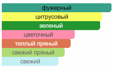 Аромат открывается свежими нотами сирени и мандарина, приправленными лёгкими акцентами мяты. В сердце композиции раскрываются цветочные акценты с фиалкой, розой и амариллисом, с добавлением лёгкой сладости персика. Завершается композиция тёплым и стойким шлейфом ванили и кедра, который сохраняется долго.