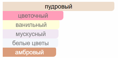 Средние ноты: тальк, ваниль, лист фиалки, бензоин