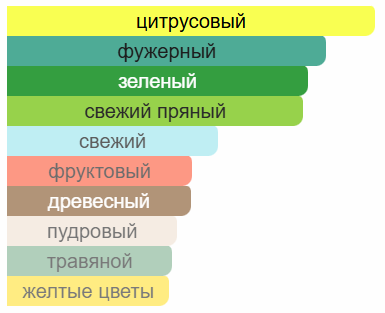 Верхние ноты: горький апельсин, нероли, красный апельсин, бергамот, мандарин
