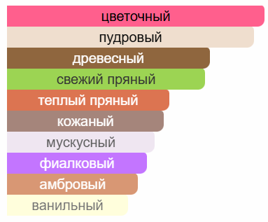 Аромат открывается свежими нотами яблока, перца и фрезии, плавно переходя в цветочные акценты с жасмином, розой и фиалкой. Завершается композиция тёплыми древесными и мускусными нотами сандала и замши, придающими аромату глубину и стойкость.